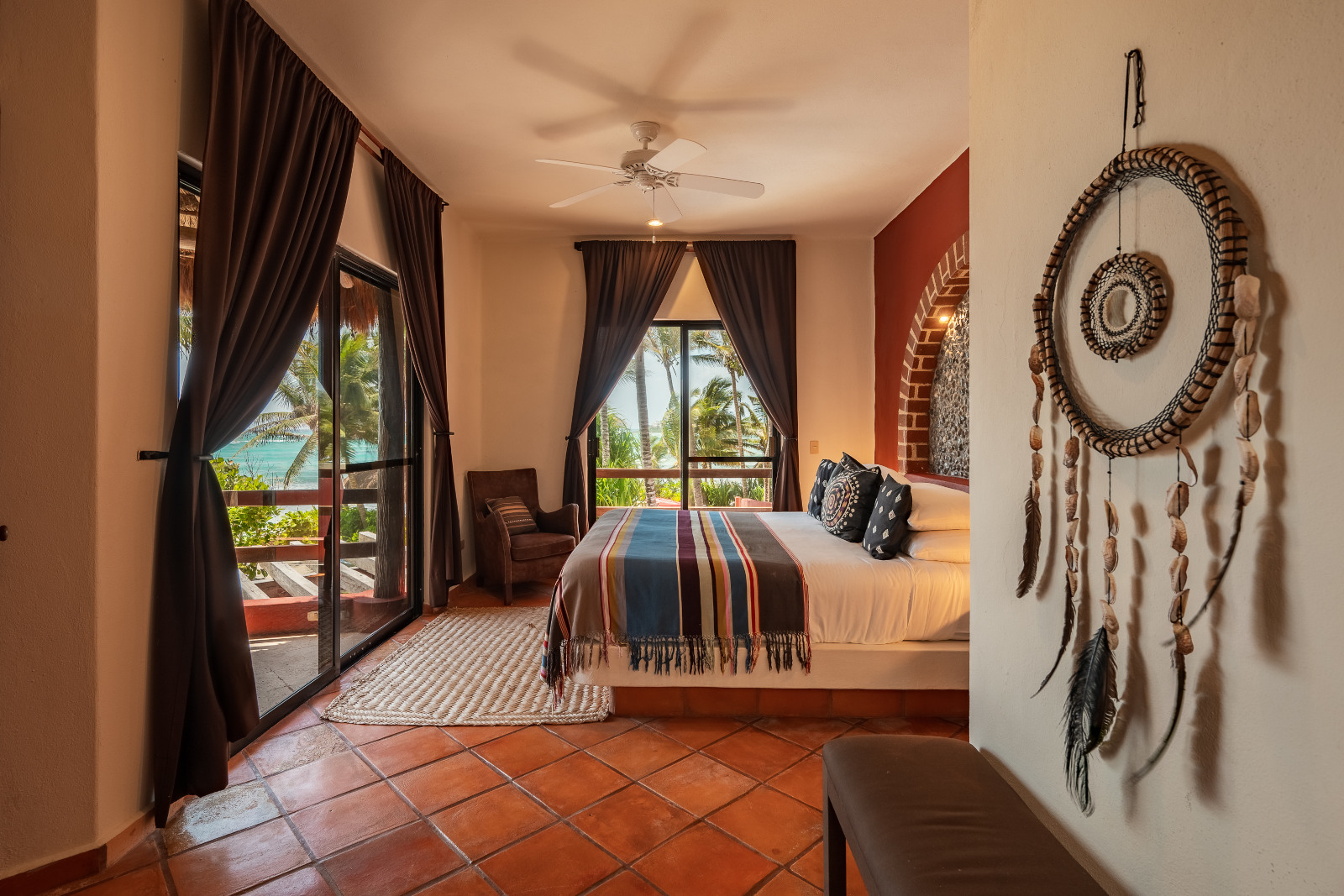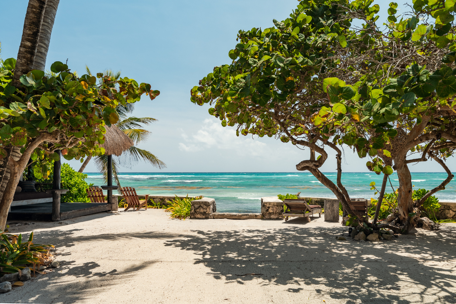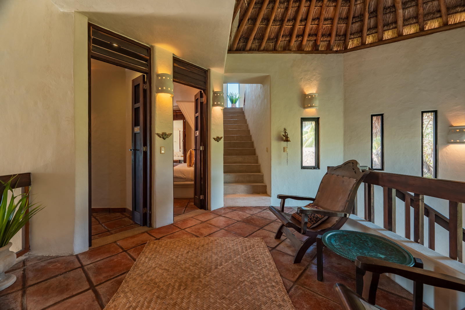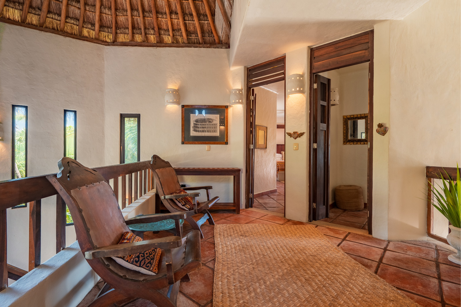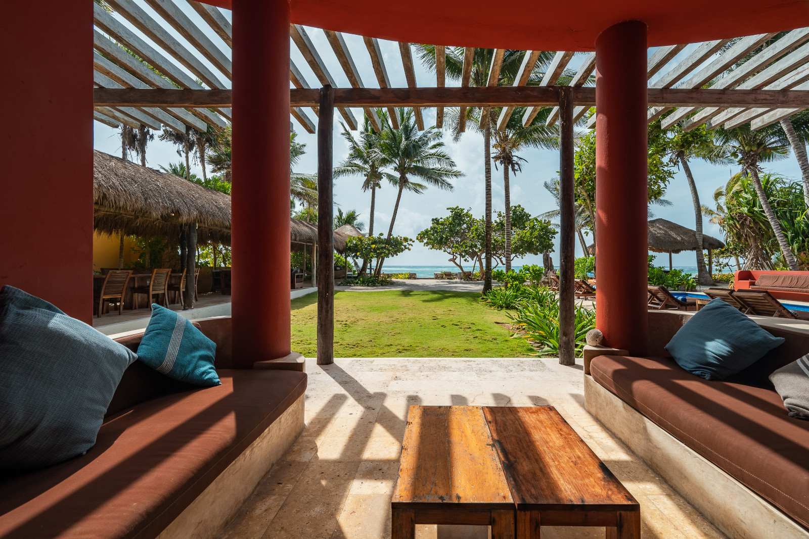 Stretching across 120 feet (40 meters) of pristine beachfront, the estate sits directly on the sand, with warm turquoise waters just steps away. Exceptional swimming and snorkeling await just offshore, where the second-largest reef in the world reveals its wonders. After a dip in the sea, unwind in one of two beachside palapas strung with hammocks, or in open-air living rooms where the sound of waves becomes your soundtrack.